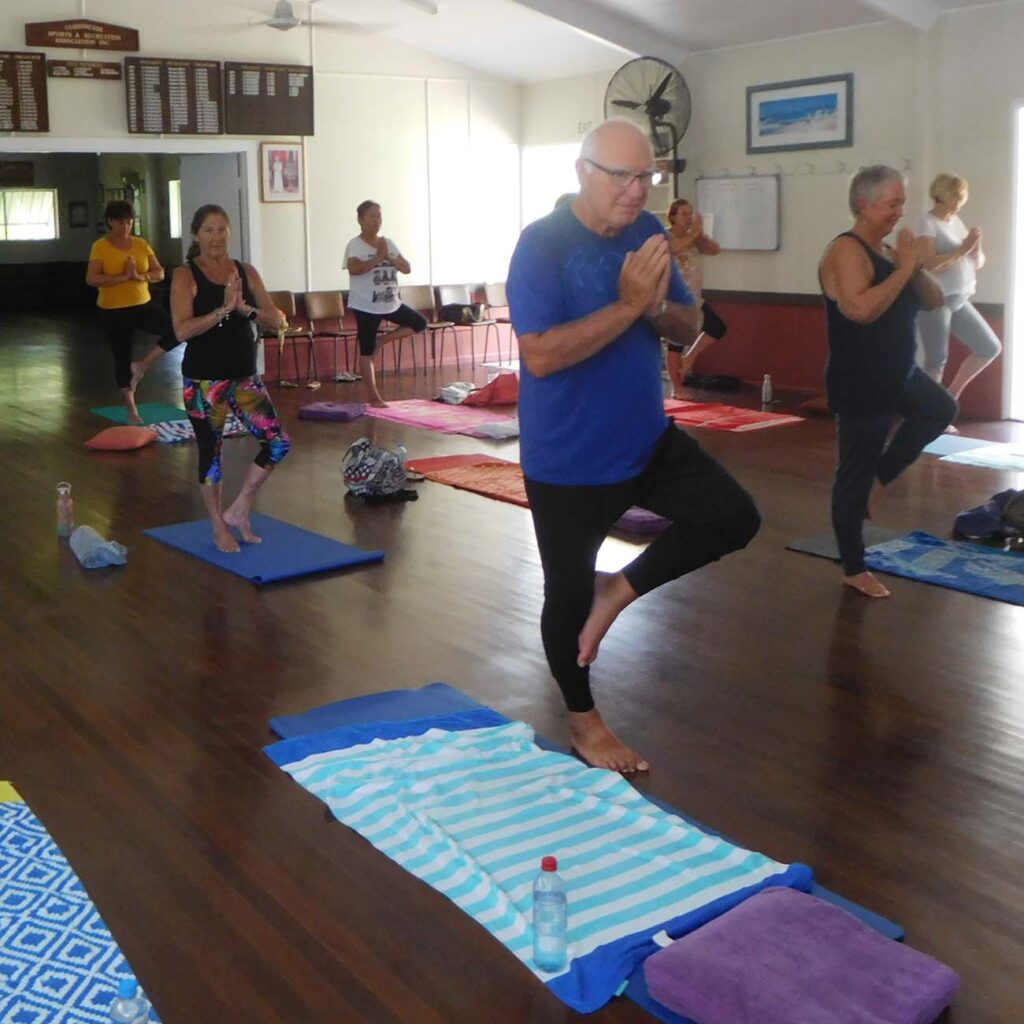 Each class begins with a short relaxation and centering practice, followed by gentle warm-up postures (asanas) to mobilise the joints, asanas to stretch, strengthen and focus, breathing practices (pranayama), and meditation.